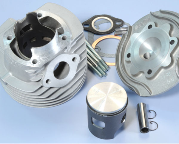 130 cc for Vespa 90-125/PV/ET3/PK/S/XL/2, Ø 57mm, aluminium, 6 ports, stroke 51mm, conrod 0,0mm, with cylinder head, spark plug decentered, SPORT-TUNING, high-performance.