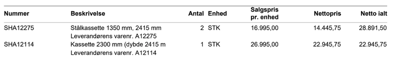 • Kasette 2300mm (dybde 2415m) a26.995+m