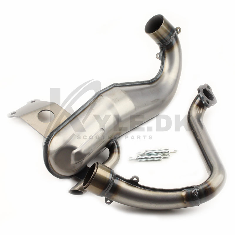 Udstødningen passer rigtig godt til cylinder kit fra 75cc til 115cc og monteres i samme huller som den originale udstødning til ape 50.
